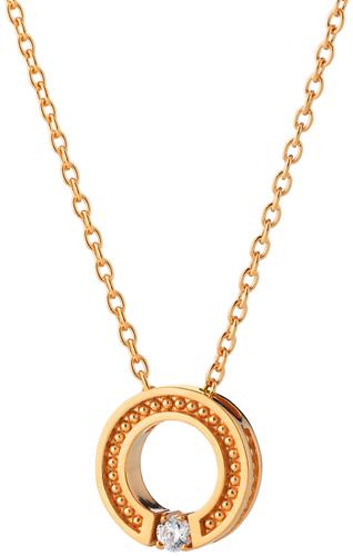 Aina-riipuksen minimalistinen muoto on viimeistelty pienillä yksityiskohdilla, helmeilevällä reunalla ja kirkkaalla kivellä,